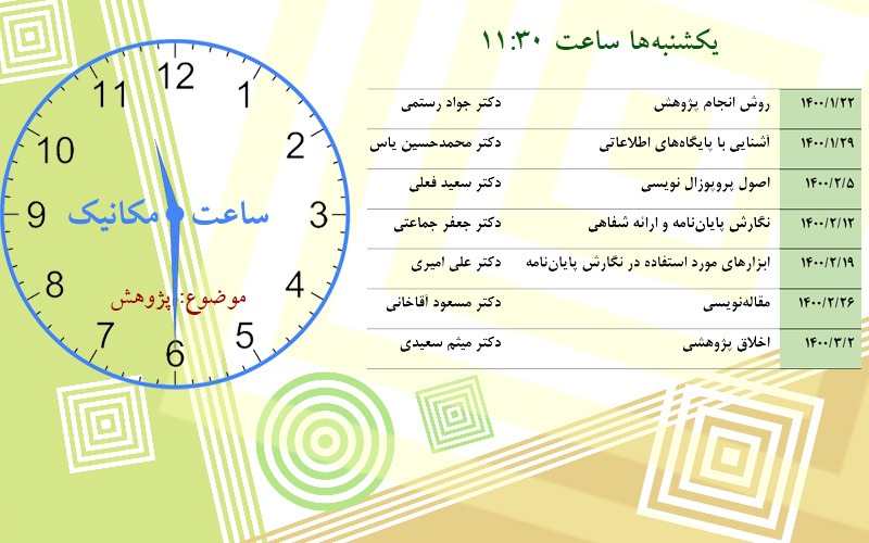 دریافت برنامه ساعت مکانیک نیمسال دوم سال تحصیلی 1399-1400